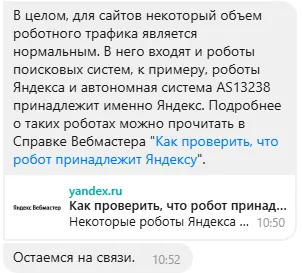 Мы решили уточнить, действительно ли эти боты принадлежат Яндексу. Для этого обратились в техническую поддержку Яндекс.Поиска — и вот что нам удалось выяснить: